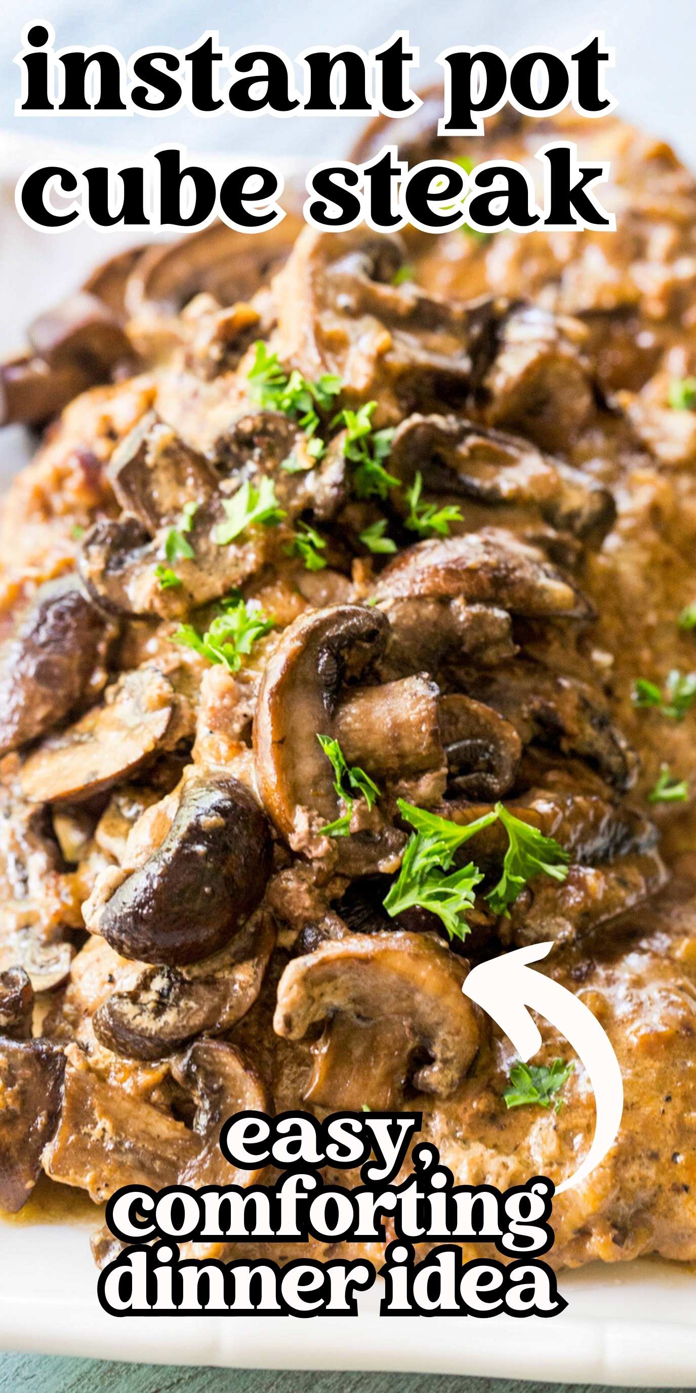 This Instant Pot Cube Steak with mushroom gravy is a quick and delicious dinner recipe. It makes tender cube steak with a creamy sauce.