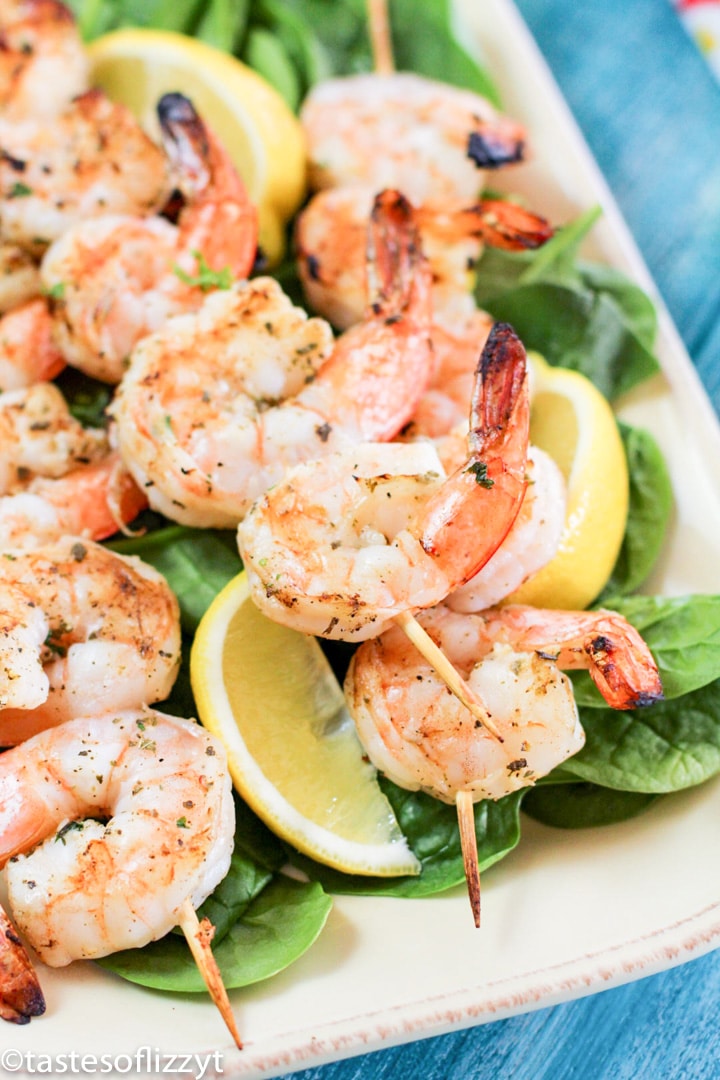 Looking for an easy grilled shrimp recipe? Try these Lemon Garlic Shrimp Skewers. They are made with colossal shrimp and have amazing flavor!