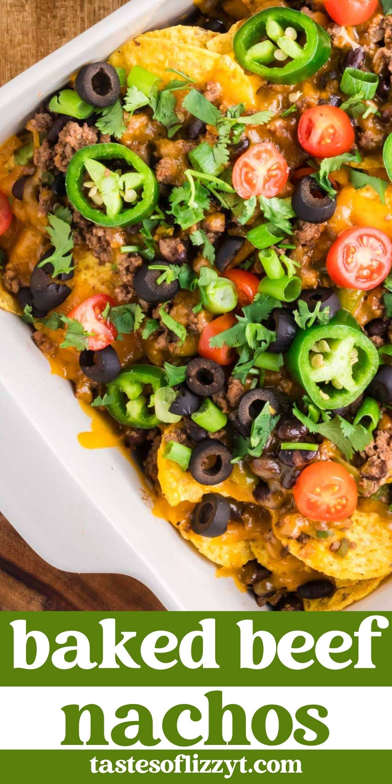 Keyword baked nachos, ground beef recipe, nachos supreme, tailgate recipe