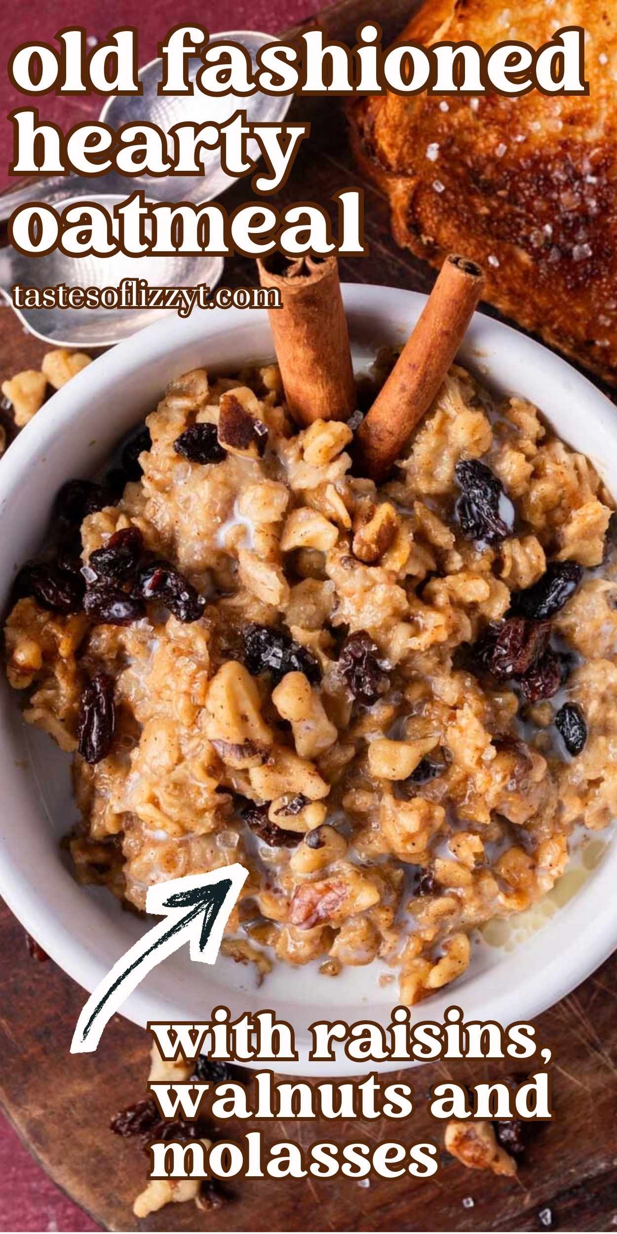 - Remove from the heat and add the remaining ingredients. Stir until well combined. Serve hot. ½ teaspoon vanilla extract, ¼ cup packed brown sugar, ¼ cup salted butter, 2 teaspoons ground cinnamon, ¼ teaspoon ground nutmeg, 2 tablespoons molasses, ¼ cup chopped walnuts, ½ cup raisins
