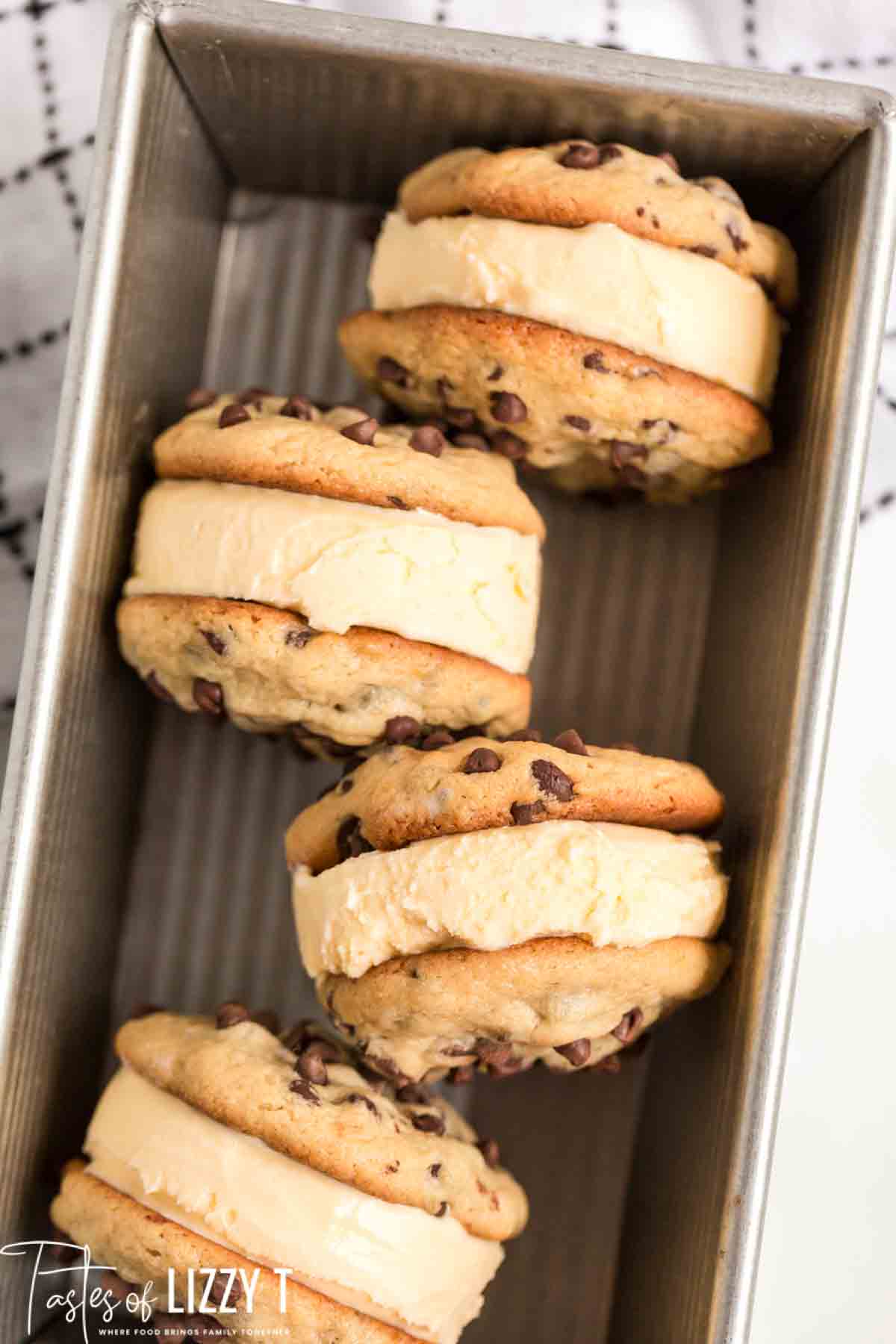 - You can also soften the ice cream, spread it in a 9×13 pan and freeze. Then use a cookie cutter the same size as the cookies to cut circles of ice cream to easily sandwich between the cookies.