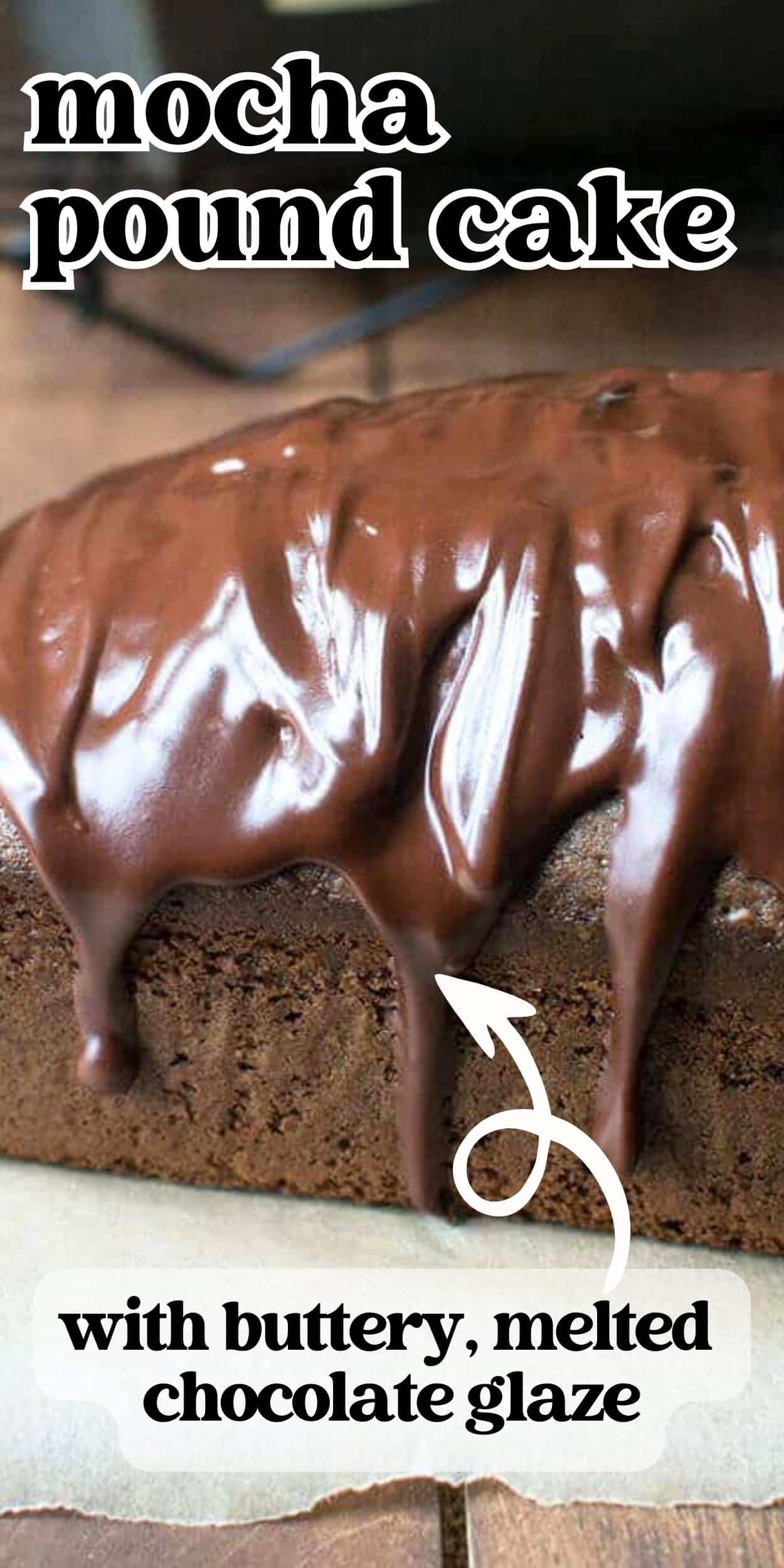 Sour cream mocha pound cake recipe made in a loaf pan. This moist, from-scratch cake is flavored with chocolate and coffee and topped with a rich chocolate glaze. It’s like your favorite coffee shop drink in a cake.