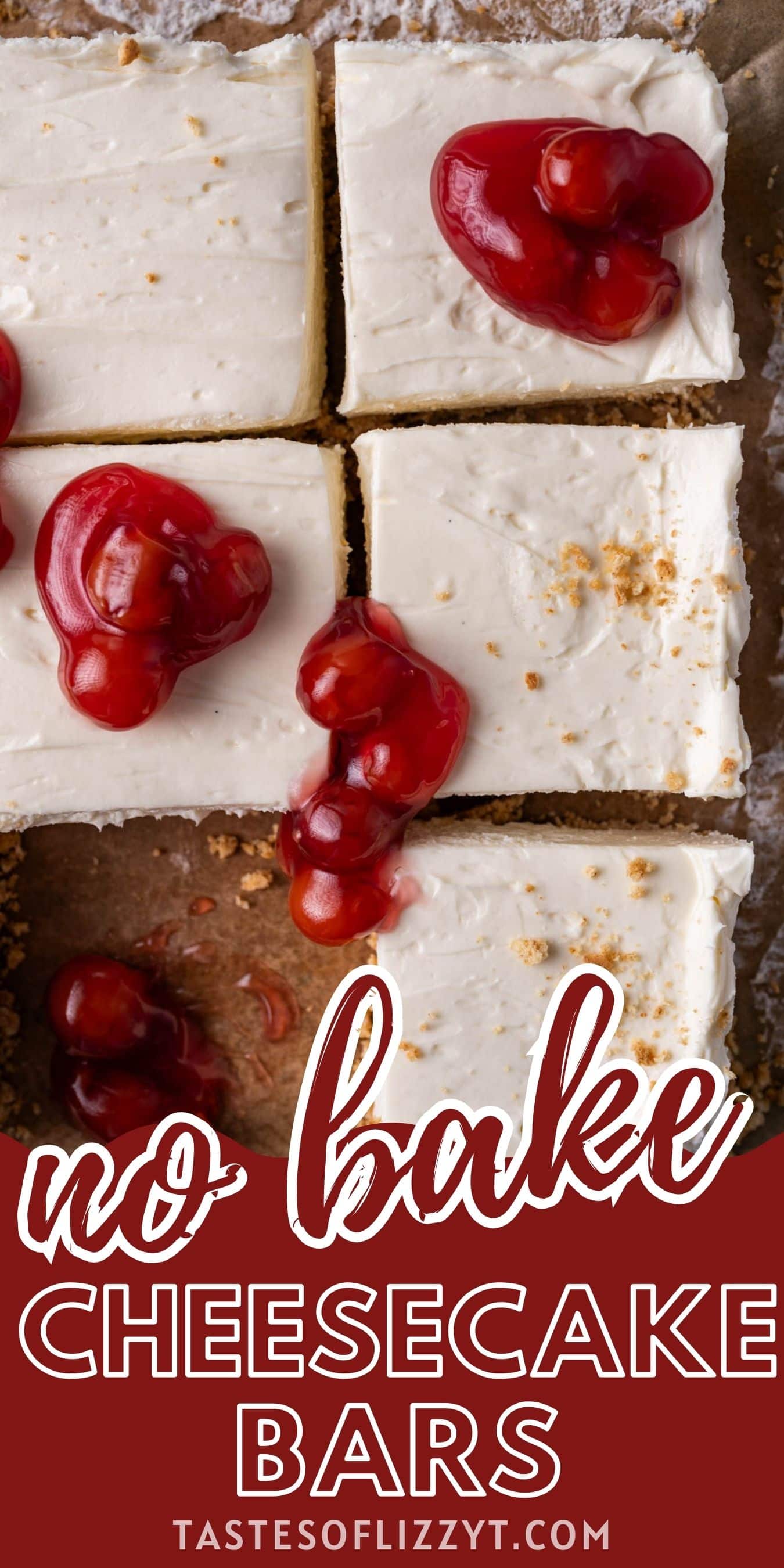 I showcased the no bake cheesecake bars with cherry pie filling, but also with fresh berries such as strawberries or mixed berries.