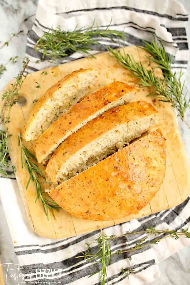 Why is this bread “easy”? You don’t have to knead it, just like our no knead focaccia or jalapeno cheesy bread! You’ll mix the ingredients together, let the dough rise and then bake. No messy, floury fingers necessary. No dusty countertops. Just a delicious bread that will make you smile.