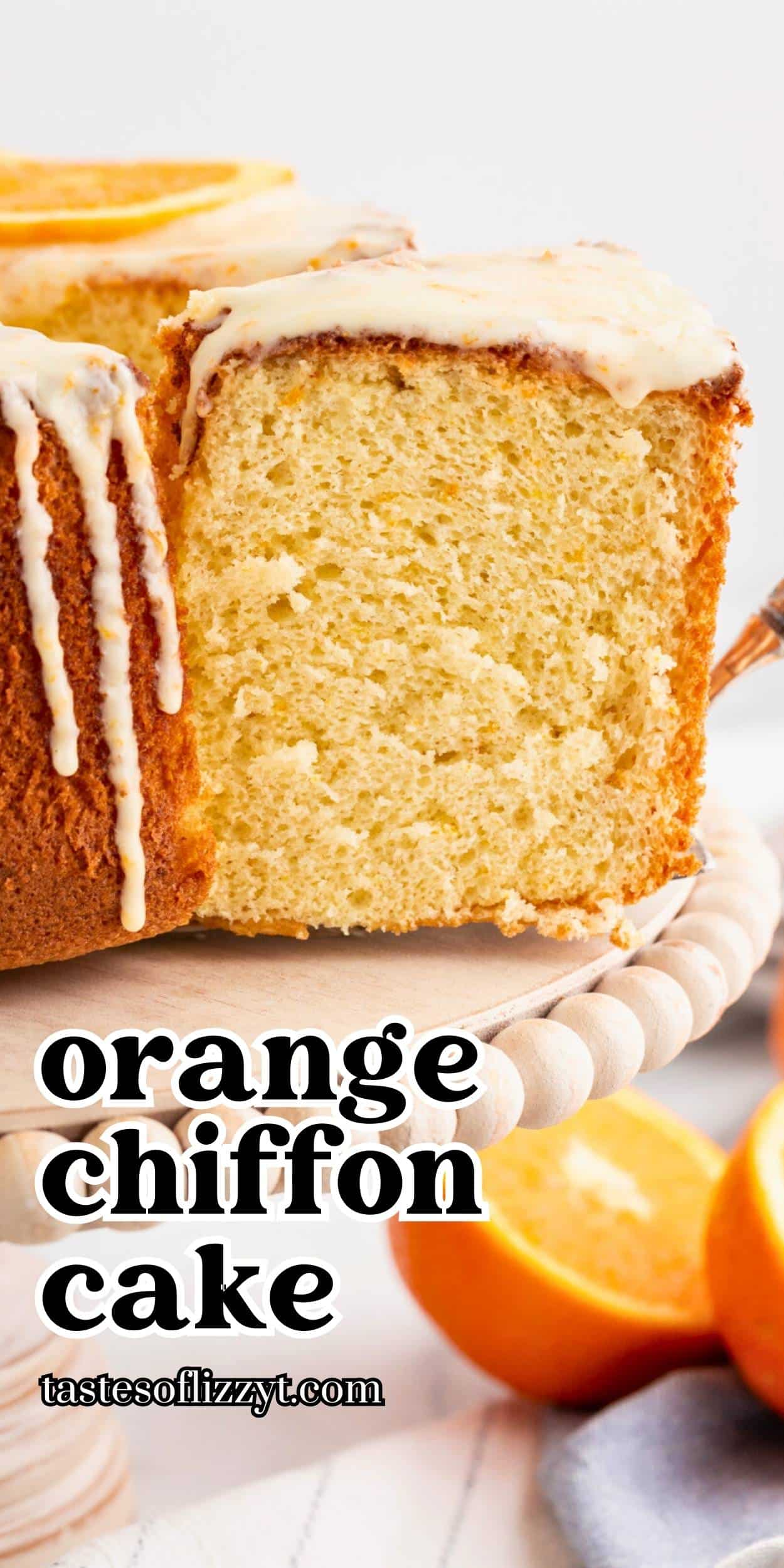 Light, fluffy, orange chiffon cake made with fresh oranges. Make a simple powdered sugar glaze to top the cake for a simply gorgeous dessert recipe.