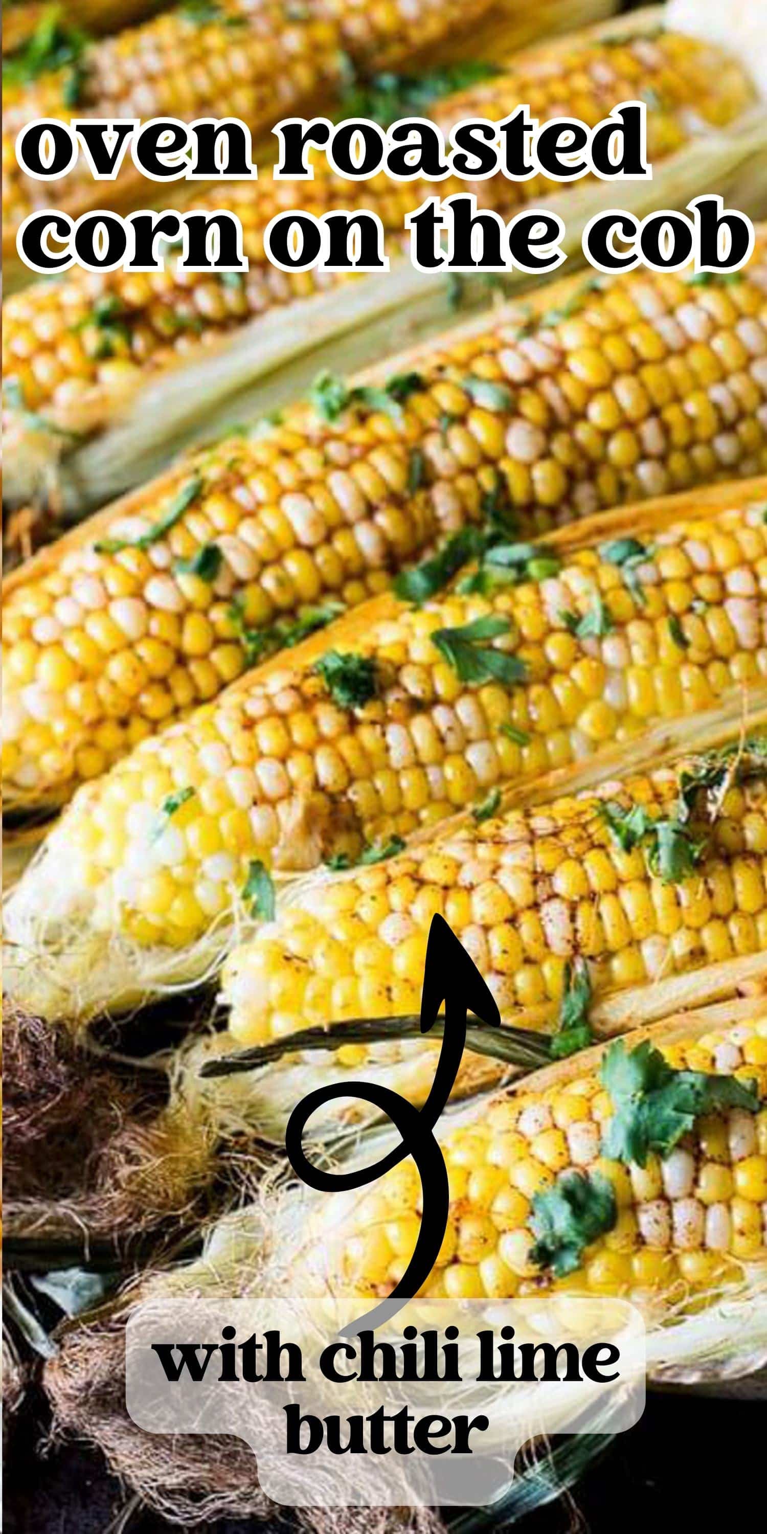 Oven roasted corn with chili lime butter. The sweet corn and spicy butter makes the perfect summer side dish.