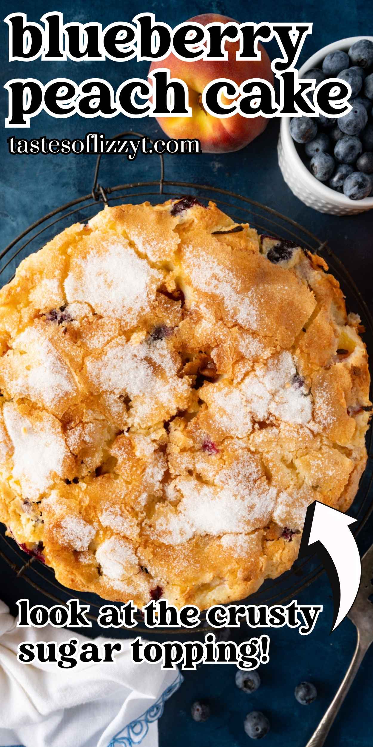 This peach blueberry cake has an irresistible crackly sugar crunch.