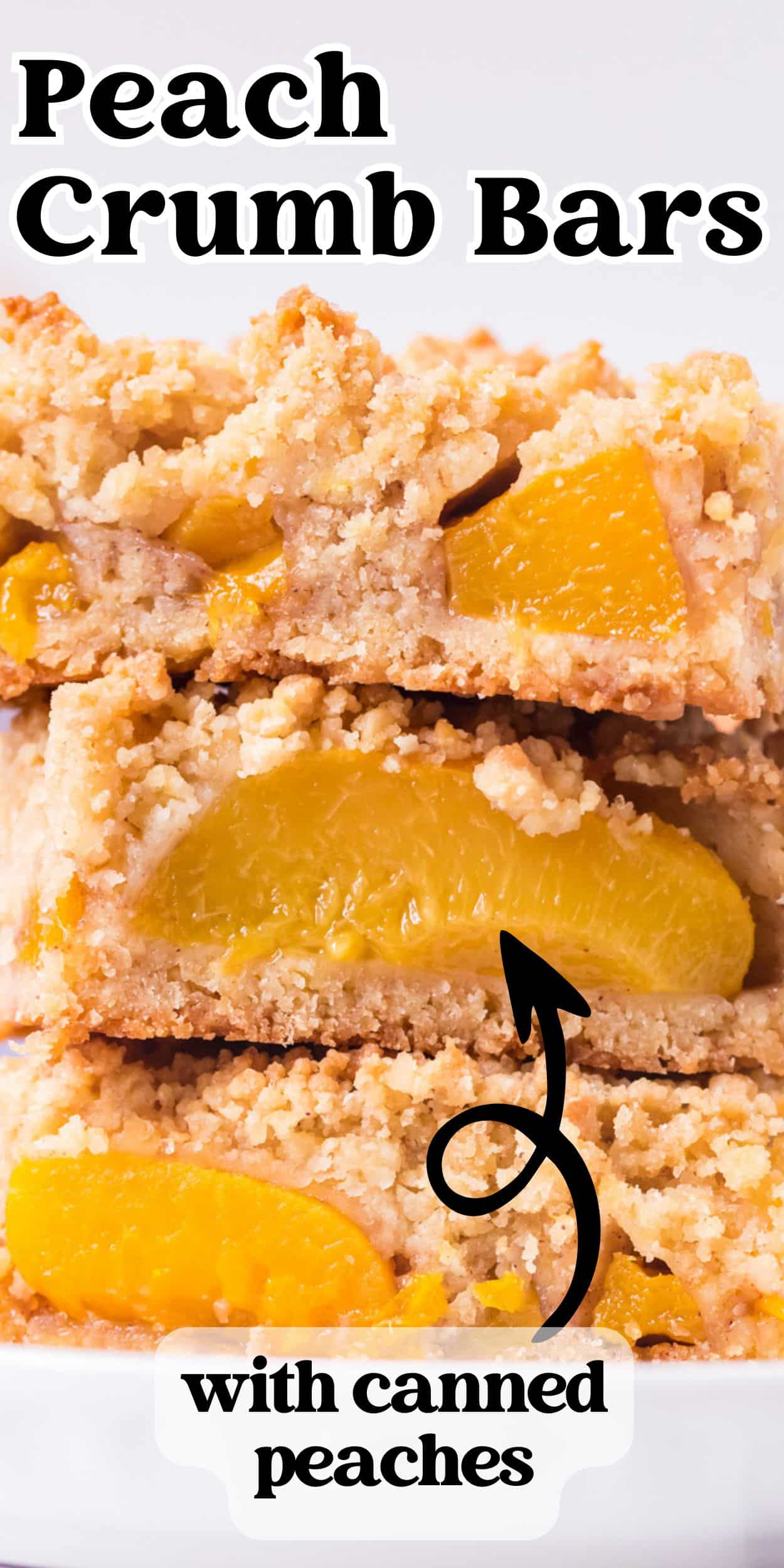 Buttery sweet peach bars with canned peaches. Use the crumbs for both the crust and the topping in these sweet fruit bars.