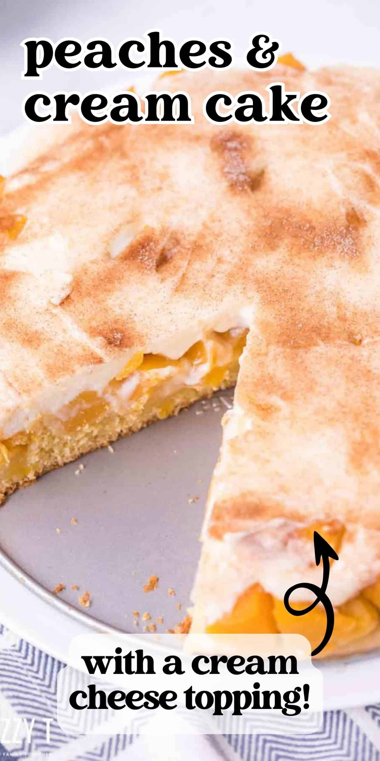 Your new favorite dessert recipe…Peaches and Cream Cake! A super easy from scratch peach cake recipe made with fresh, canned or frozen peaches. It bakes in a round pan, just like our peach blueberry cake!