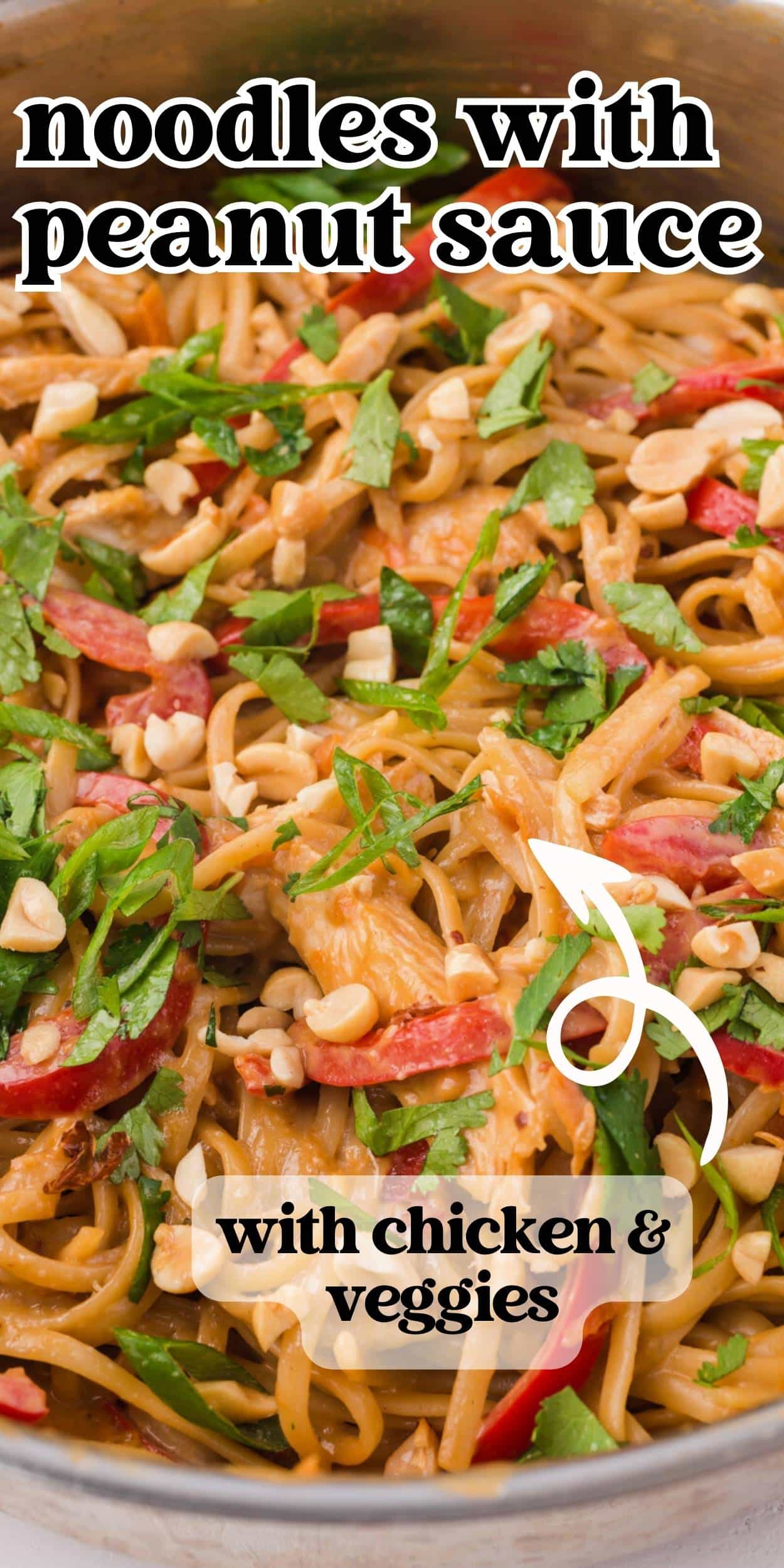 A delicious mix of flavors in our easy noodles with peanut sauce recipe! Tender chicken and fresh veggies covered in a homemade peanut sauce.