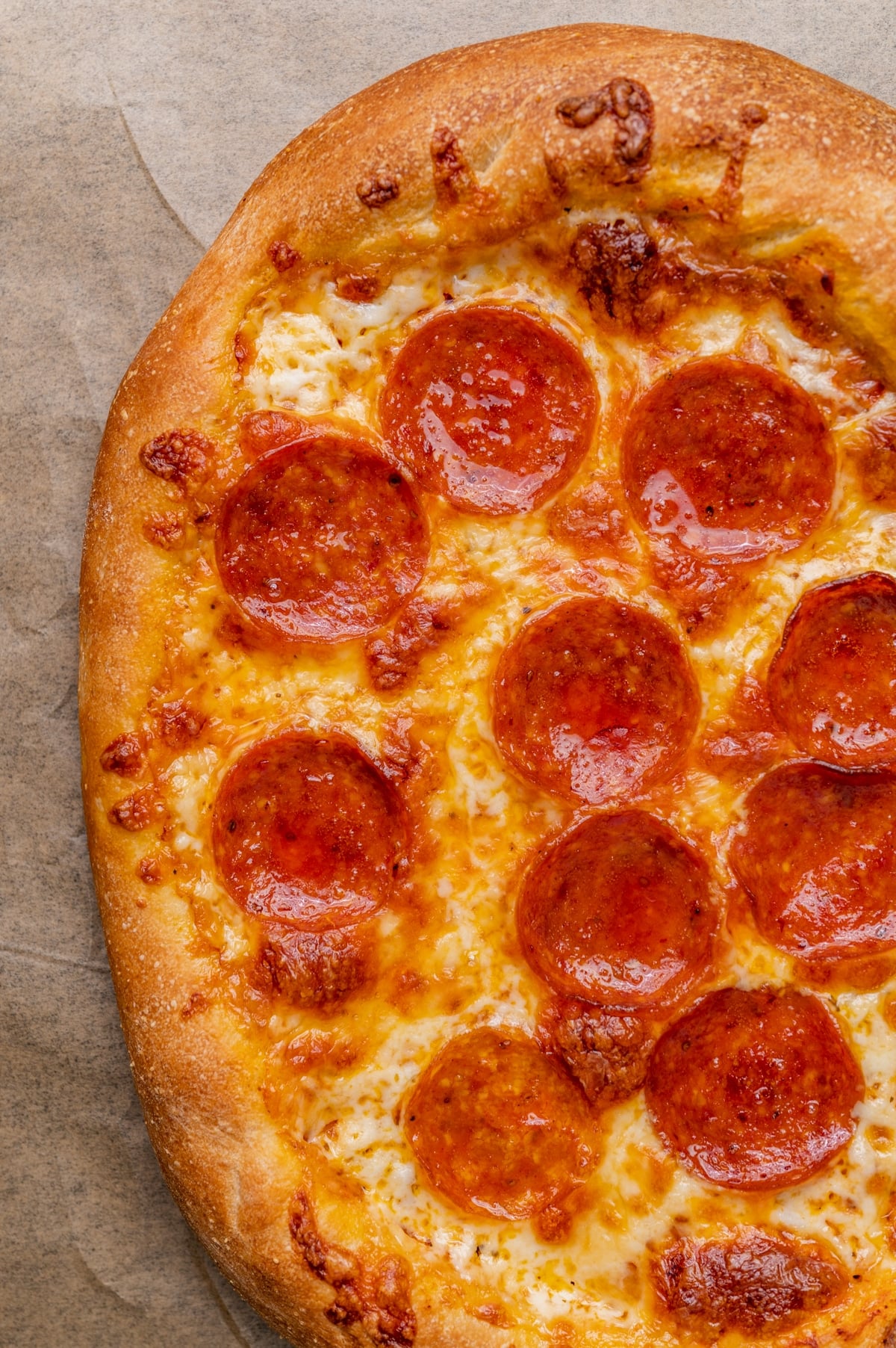 - Texture: This pizza dough is chewy on the inside but is crisp on the outside, especially if you brush the crust with olive oil before baking. And you’ll notice there’s a little baking powder in this recipe along with the yeast. That baking powder will just give a little extra rise to the dough.