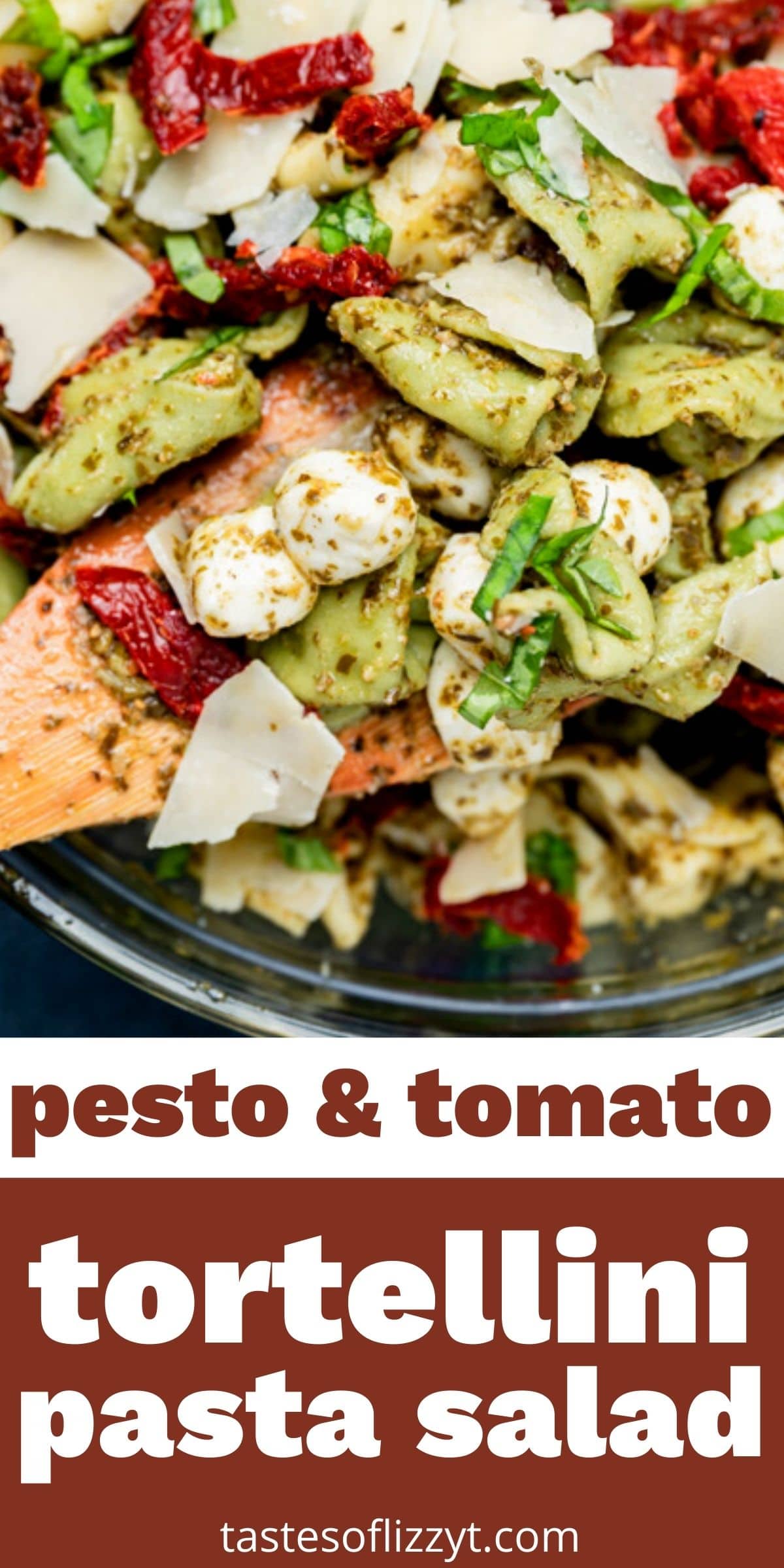 Whip up this easy pesto tortellini pasta salad in less than 30 minutes. Filled with fresh mozzarella, sun dried tomatoes and Parmesan.