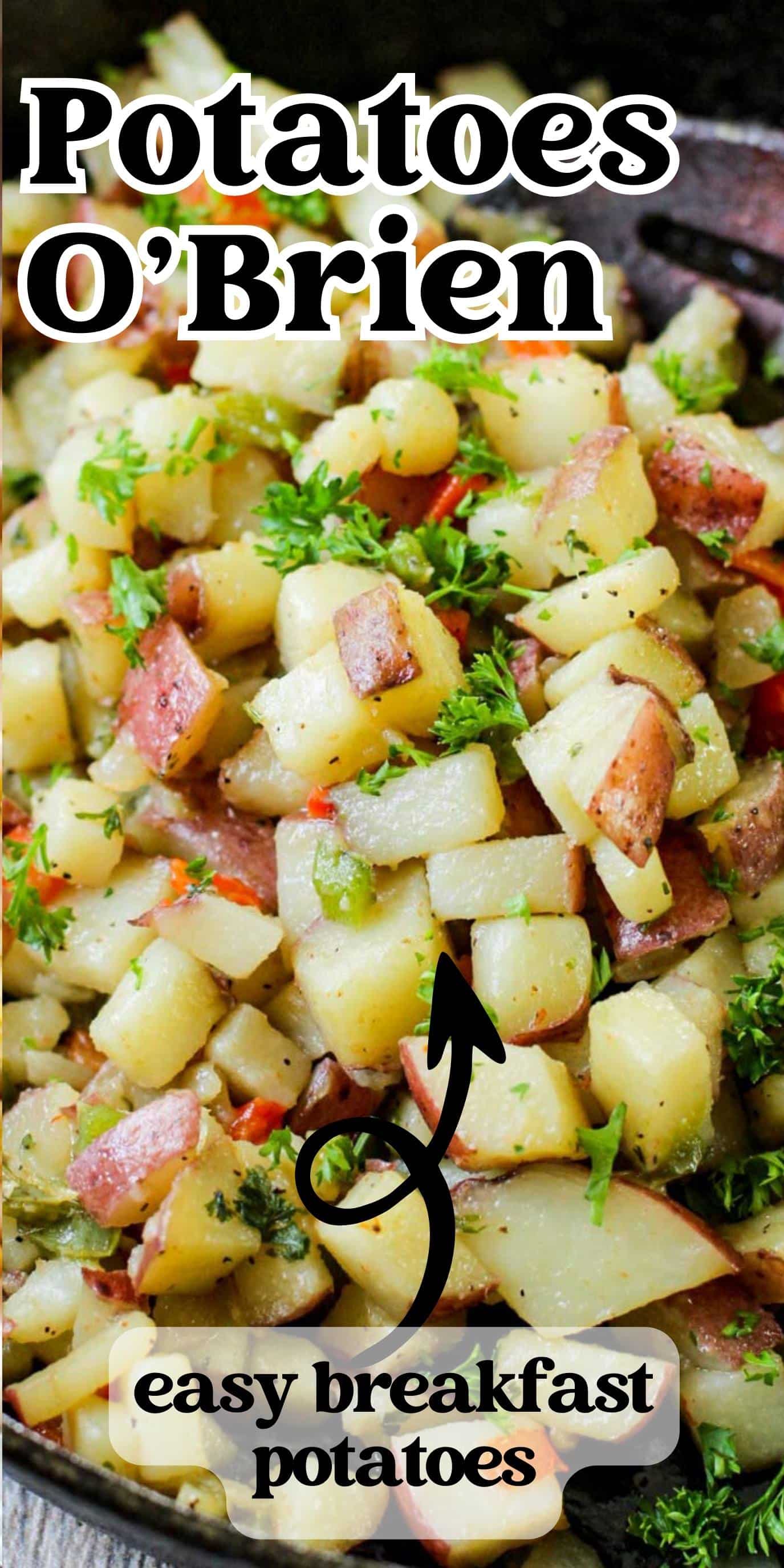 Pan fried Potatoes O'Brien make a great country breakfast. Serve these easy breakfast potatoes alongside sausage or bacon for a comforting start to the day.