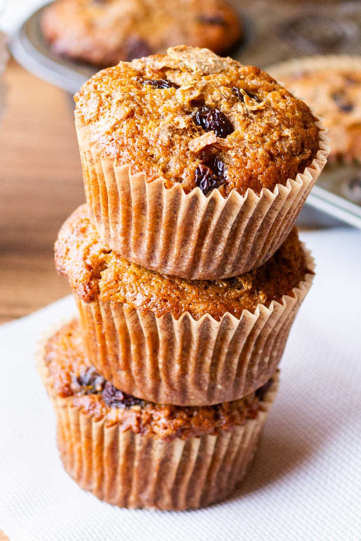 When we really need to have a special treat, we make these Raisin Bran Muffins. And they’re good for you! Here’s why we love them: