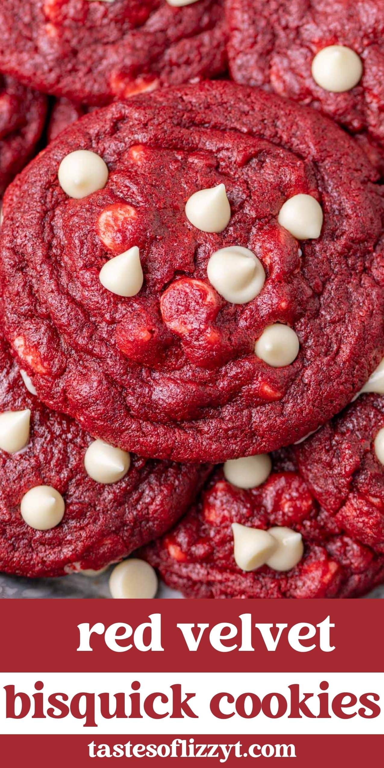 These red velvet Bisquick cookies start with an all-purpose baking mix, creating incredibly soft cookies. White chocolate chips bring smooth flavor and a nice contrast in color.