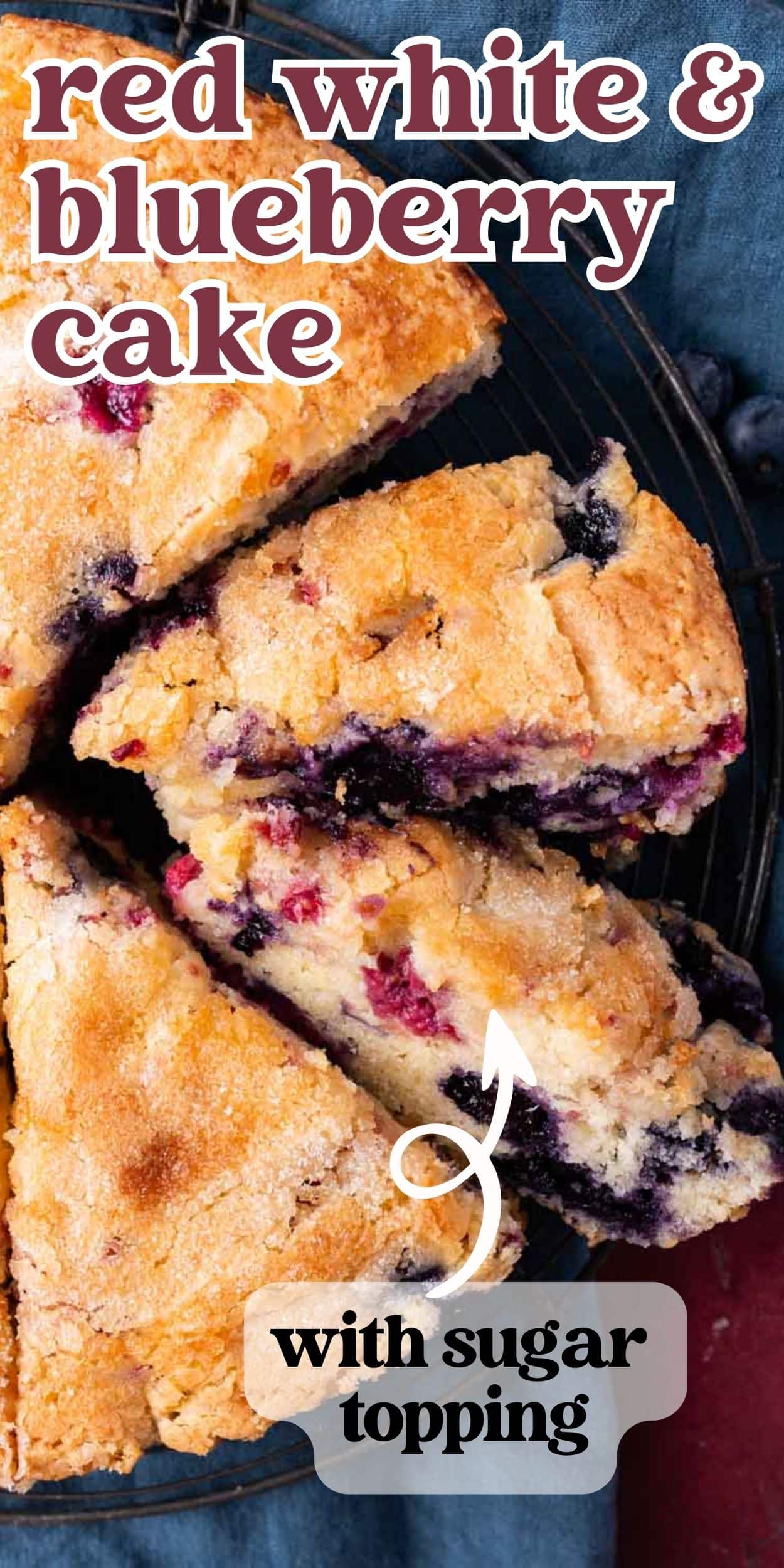 This Red White and Blueberry Cake is filled with fresh raspberries and blueberries and takes just a few minutes of prep time to get in the oven. Try our lemon blueberry cake, lemon raspberry cake and easy lemon blueberry bread, too!