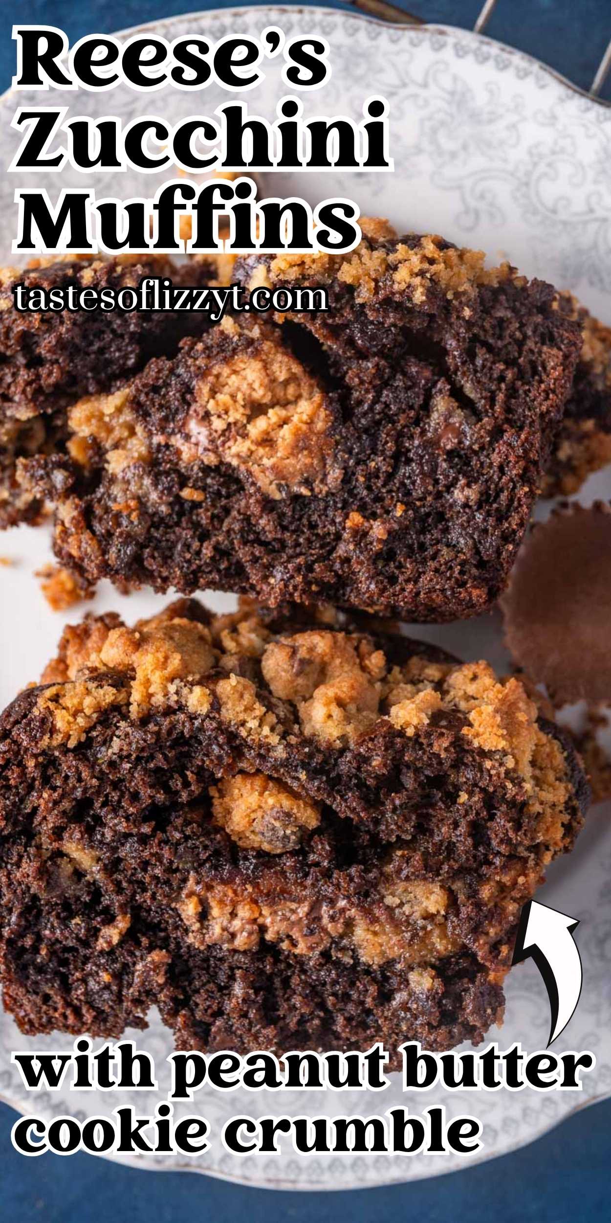 Reese’s Zucchini Muffins are mega-sized, moist chocolate cupcakes with a peanut butter streusel layer and Reese’s inside.