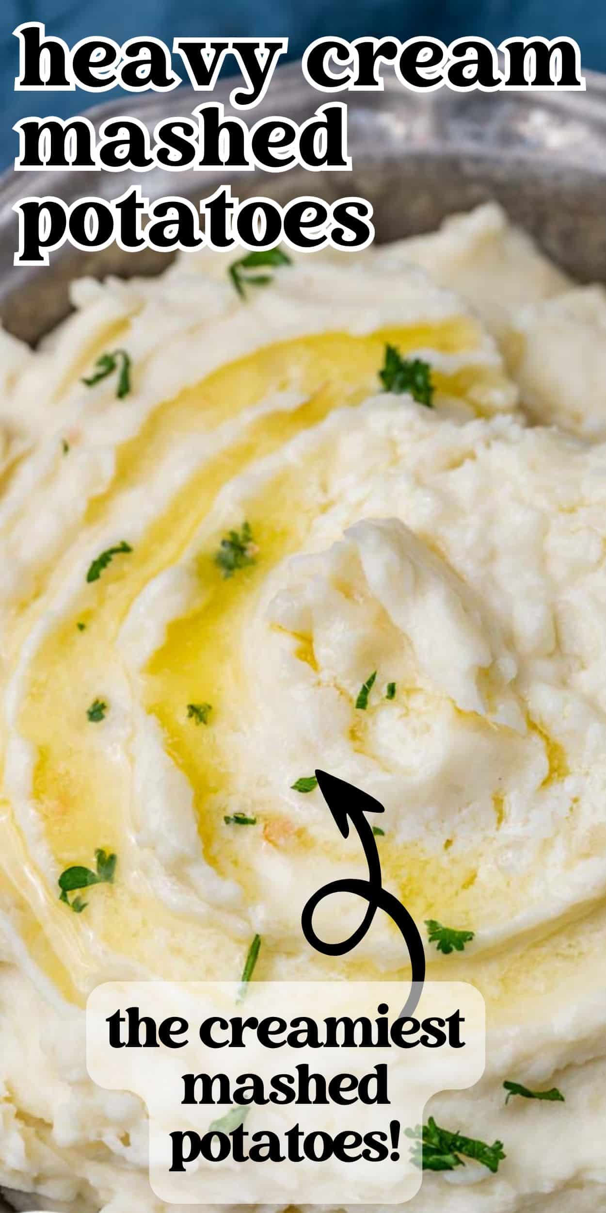 3. Heavy Cream. Can you use heavy whipping cream for mashed potatoes? Yes, and heavy cream makes the creamiest mashed potatoes. We’re talking Thanksgiving comfort food, the ultimate in rich flavor. This whipped potatoes recipe is super creamy and rich. You should definitely use heavy whipping cream.
