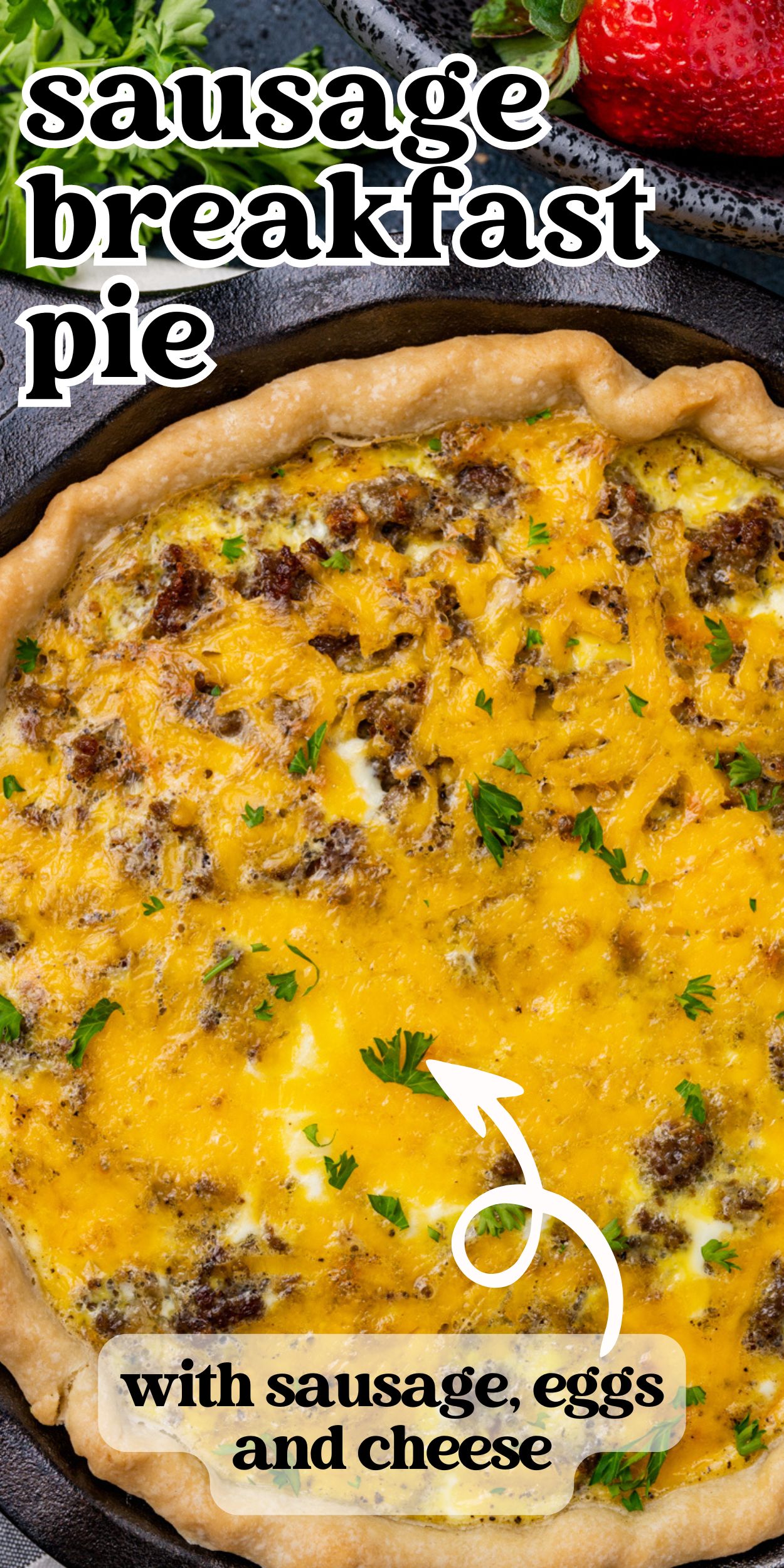 This Sausage Breakfast Pie combines three essential breakfast foods, sausage, eggs and cheese, and bakes them inside a flaky pie crust. The result is an easy breakfast pie that’s ideal for weekend brunch or Christmas morning.