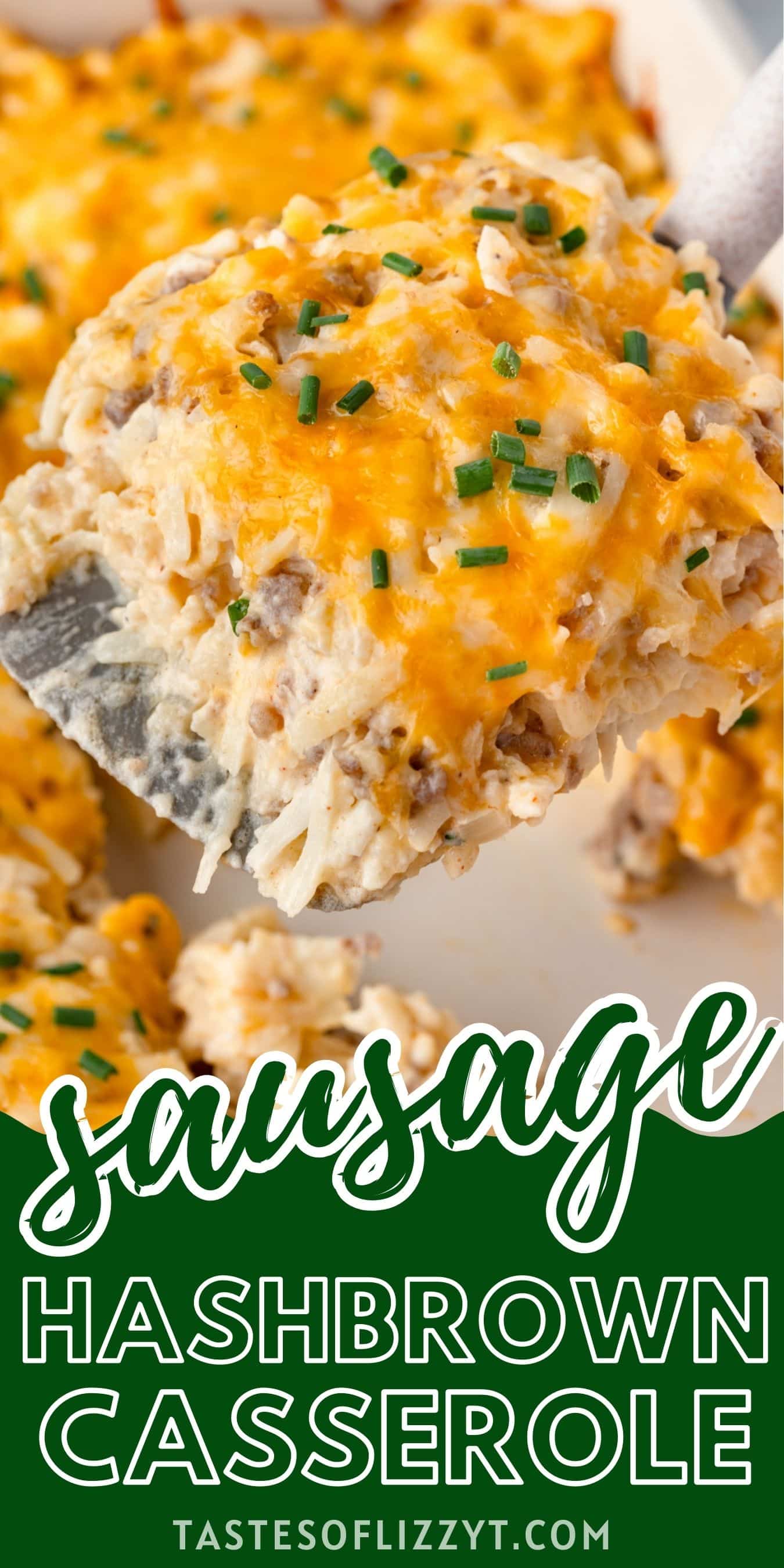 Need a delicious and hearty recipe for brunch? This Sausage and Hash Brown Casserole is sure to hit the spot! This no eggs dish is packed with sausage, creamy hash brown potatoes, and melted cheese.