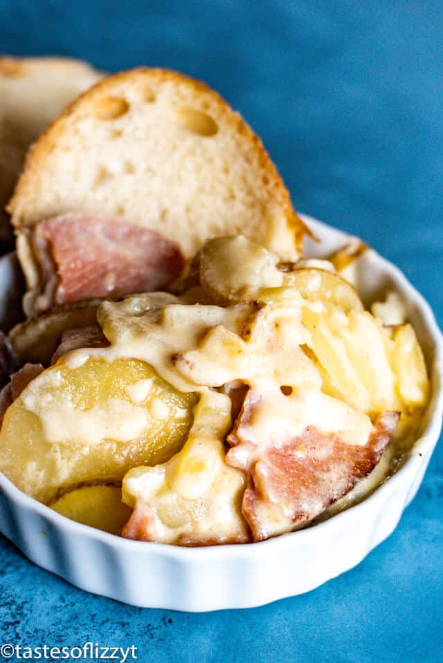 Although our basic recipe doesn’t call for cheese, we often add cheese to scalloped potatoes. We have two favorites…cheddar cheese and gruyere cheese. One is more common than the other, but if you’ve never tried gruyere with ham and potatoes, you’re missing out! It’s so, so good.