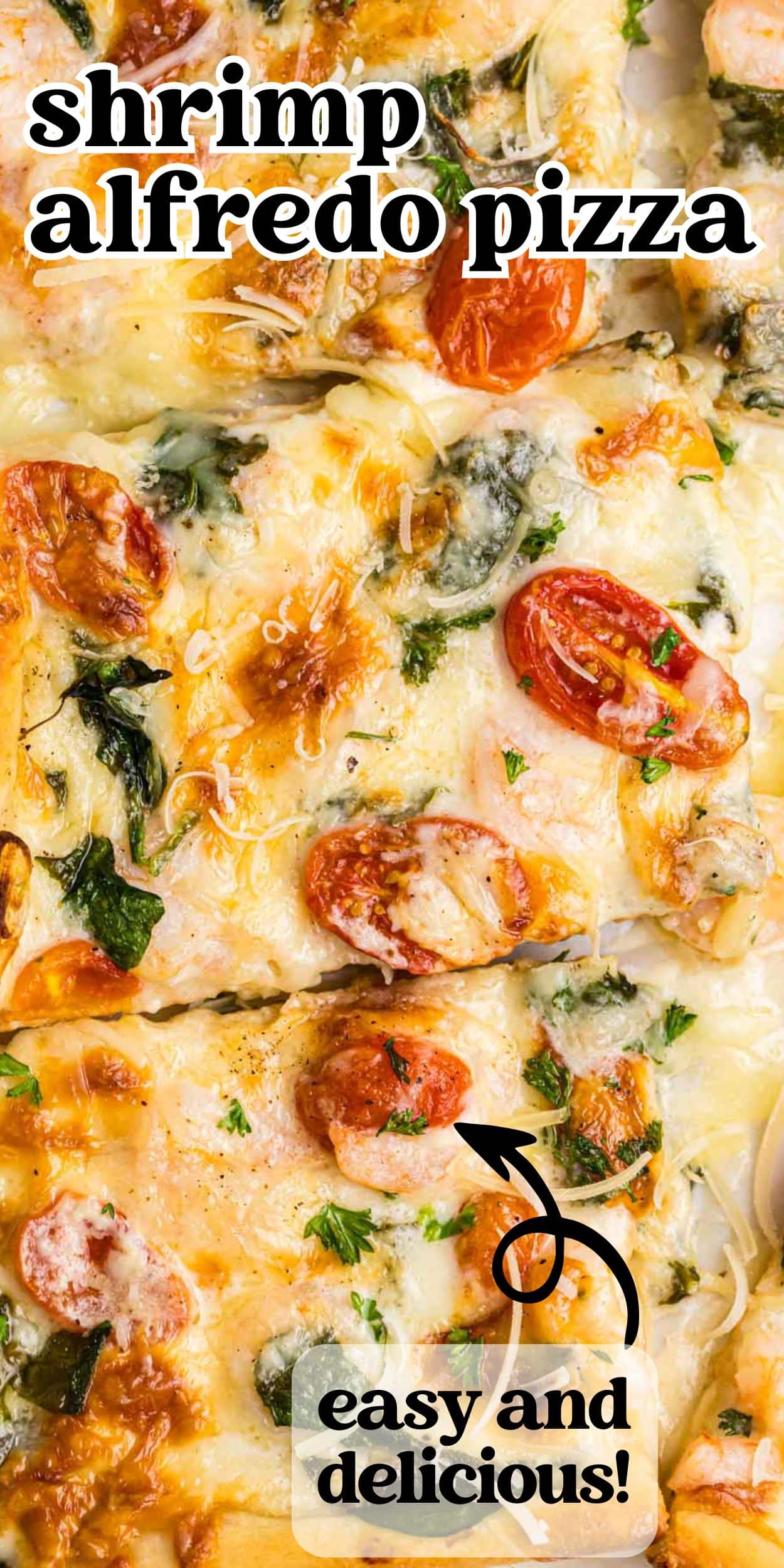 Fresh and creamy this shrimp alfredo pizza recipe is a must-make for pizza night! Under 30 minute dinner idea.