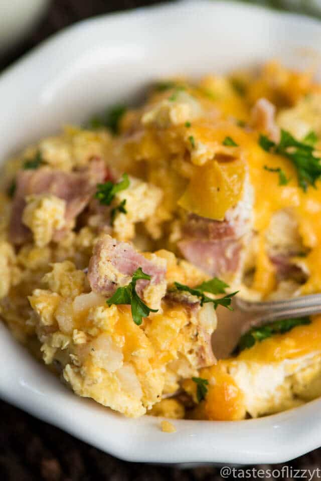 Although I’ve used a slow cooker for years, I had never made an overnight breakfast casserole in it. I’m not sure why I hadn’t. I mean, waking up to the aroma of ham & eggs is like a dream.