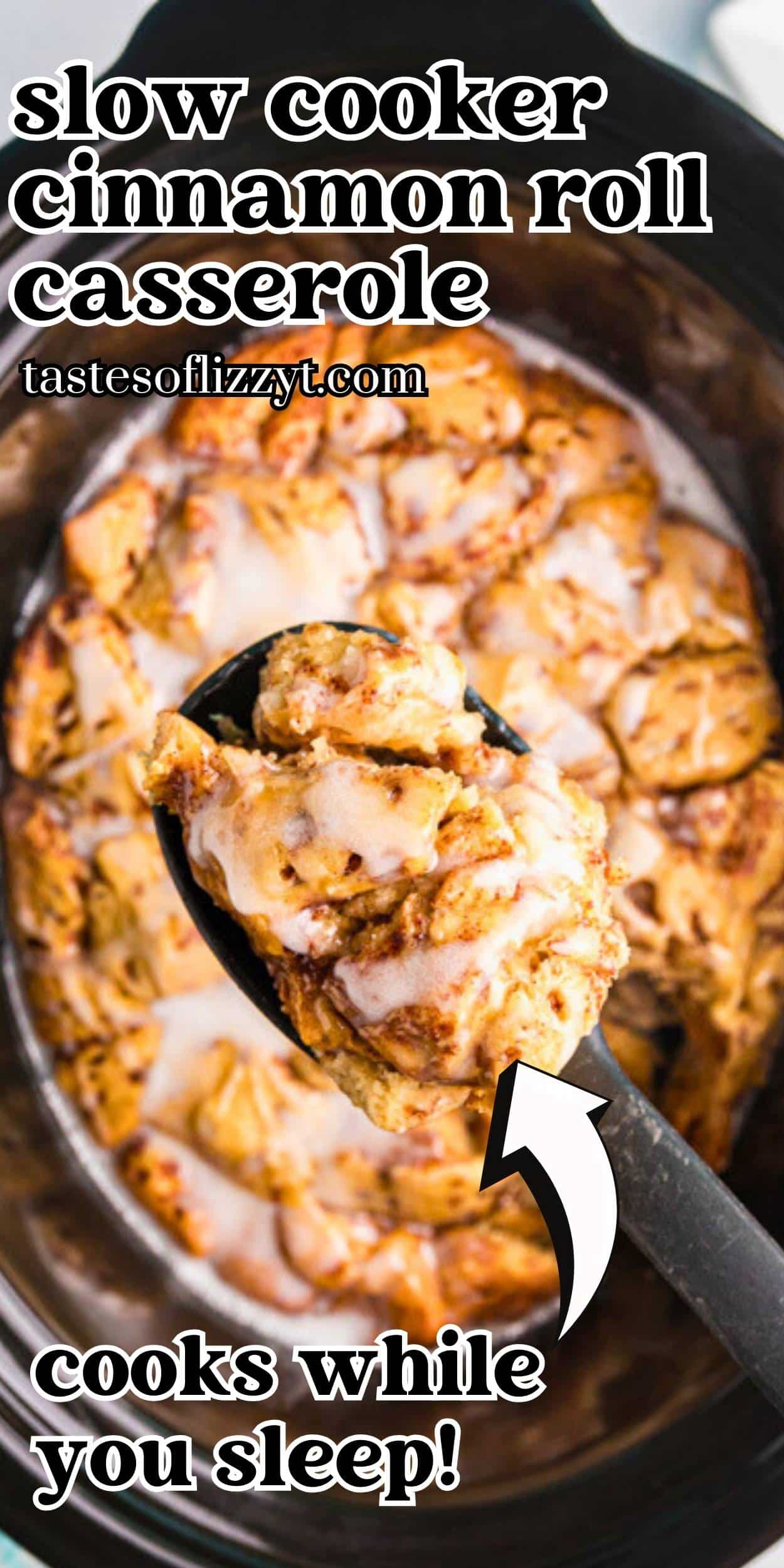 Prep breakfast while you sleep! This slow cooker cinnamon roll casserole cooks overnight for an easy breakfast the next morning.
