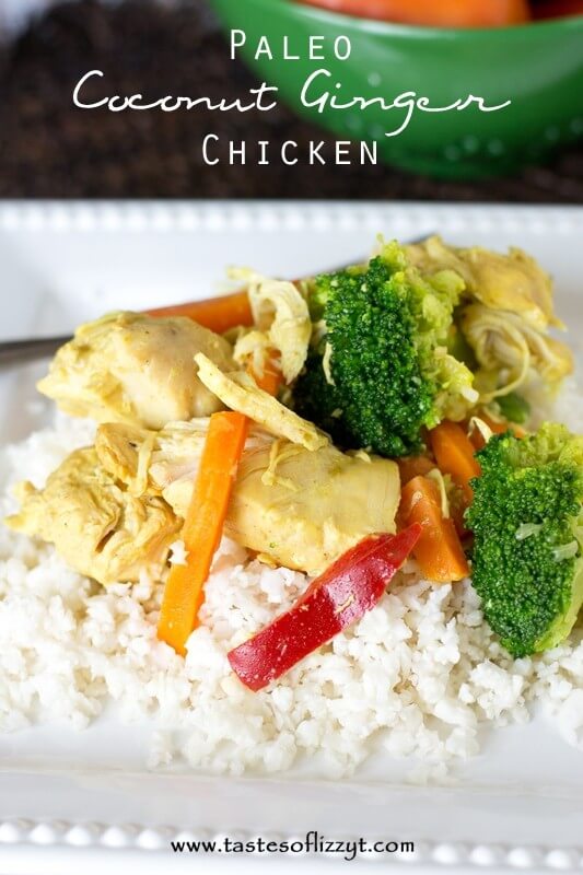 During the past 8 weeks or so, I’ve ventured away from just serving a slab of meat and a plate full of veggies to actually trying to relearn how to cook with dairy free and grain free ingredients. I found this recipe on Pinterest by Simple Bites for Slow Cooker Coconut Ginger Chicken and I knew I could make it fit our paleo diet with just a few changes. Guess what? It is now one of our favorites. Want to know why? Because it is creamy. It calls for two cans of coconut milk, which is what gives this chicken it’s super creamy texture. I was so excited when I realized that I could use coconut milk similarly to how I’d normally use cream of chicken soup. This opens up the recipe floodgates, friends! I can’t wait to try more of my old favorite recipes with a new “paleo” twist to it.