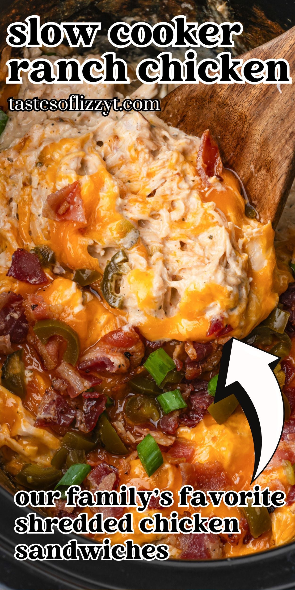 The dinner my kids come running for! Creamy Slow Cooker Crack Chicken with bacon, cheddar, ranch and jalapeños is perfect for potlucks and feeding a crowd.