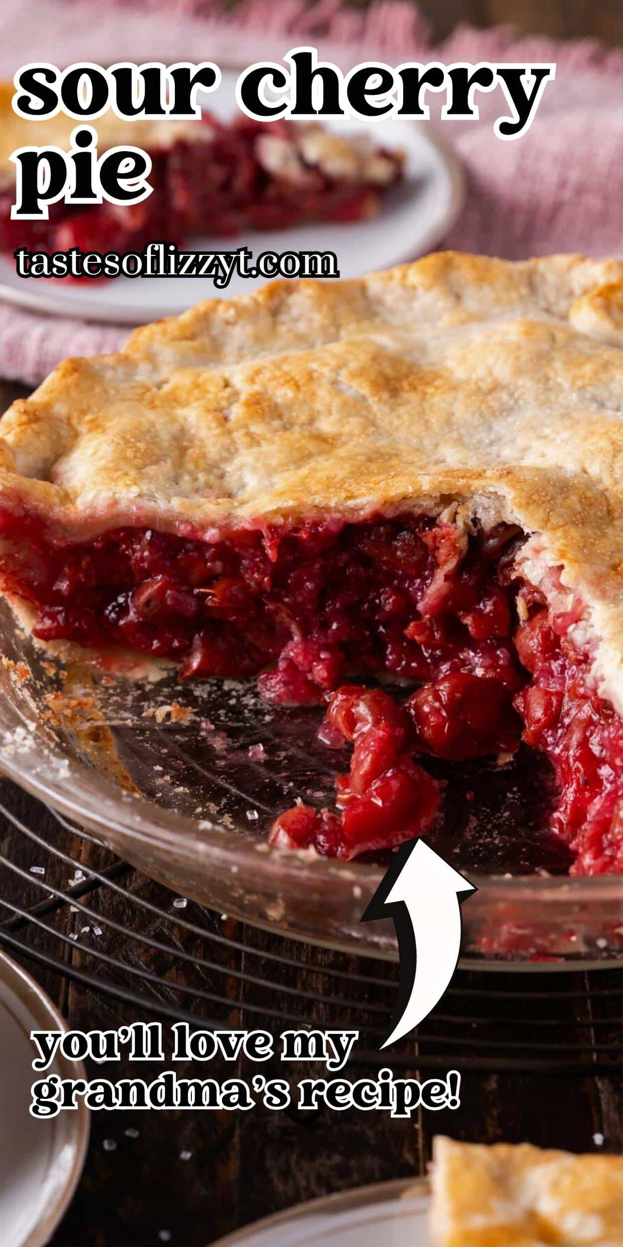 This is my Grandma’s Sour Cherry Pie recipe. Simply the best cherry pie there is, and so easy to make with just 4 ingredients inside. We love eating it warm with ice cream on top.