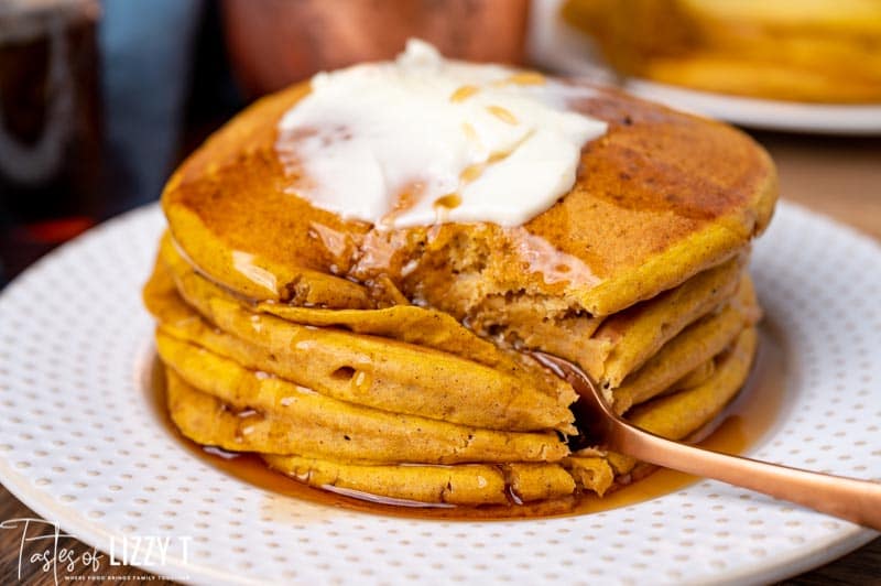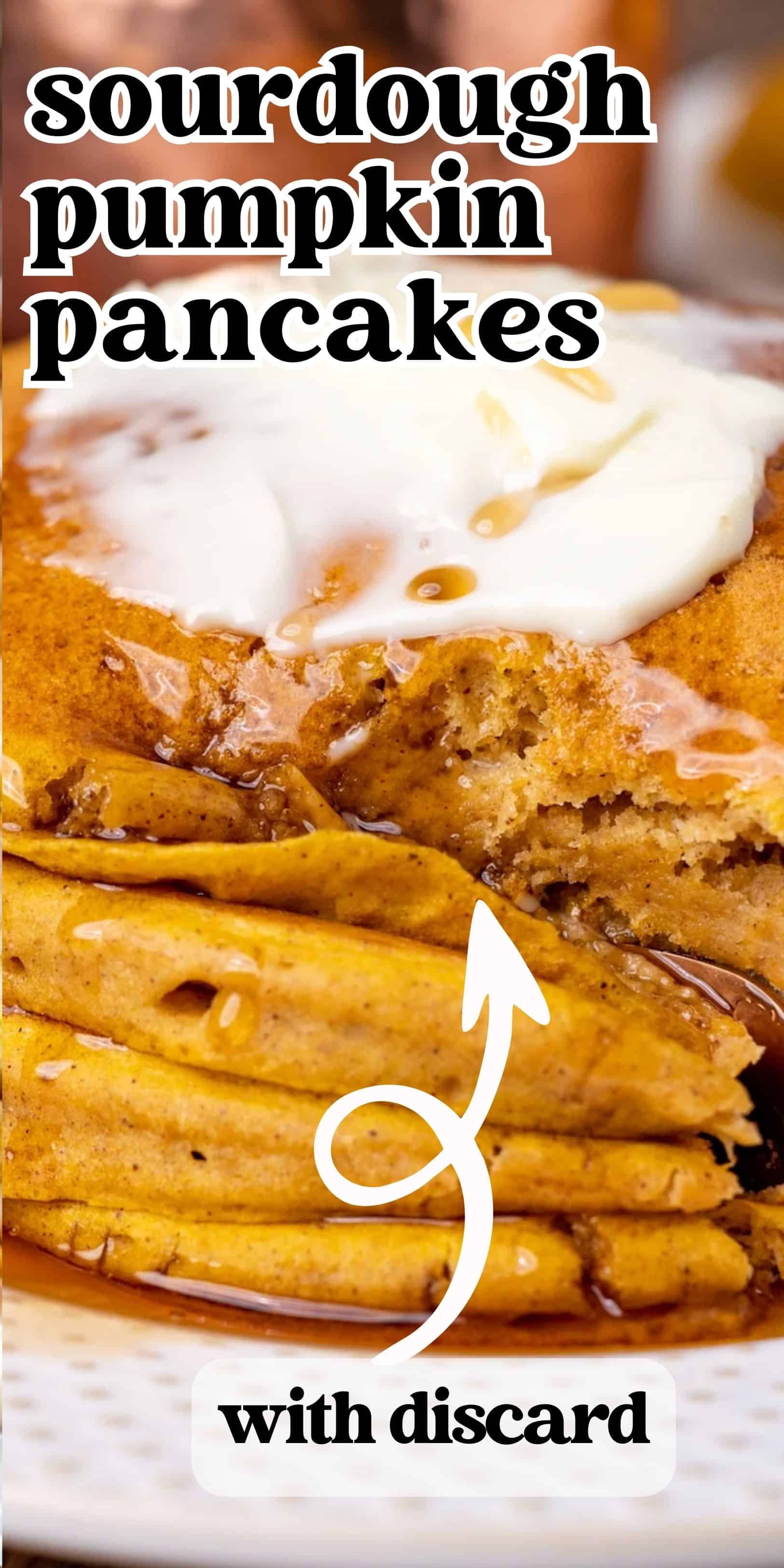 Sourdough Pumpkin Pancakes made with discard! Easy pancakes that bake up fluffy and with amazing pumpkin spice flavor.