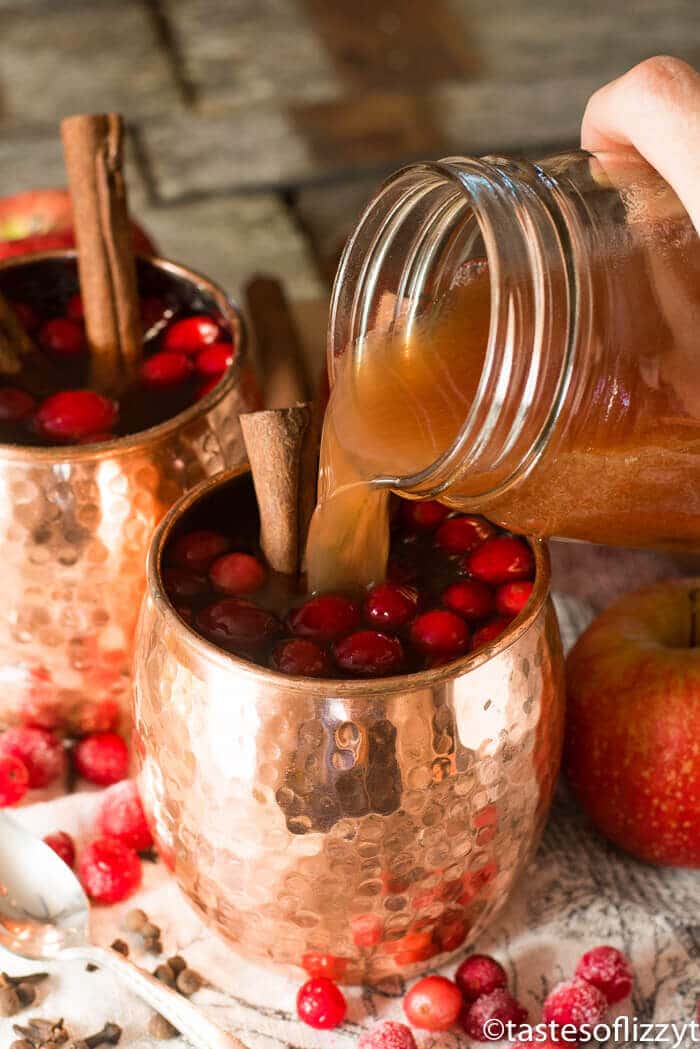 Have some cranberries on hand? Throw a couple in the top of the cups for a holiday look. Your guests will think you spent hours on this cranberry apple cider, but you’ll know the secret. 😉