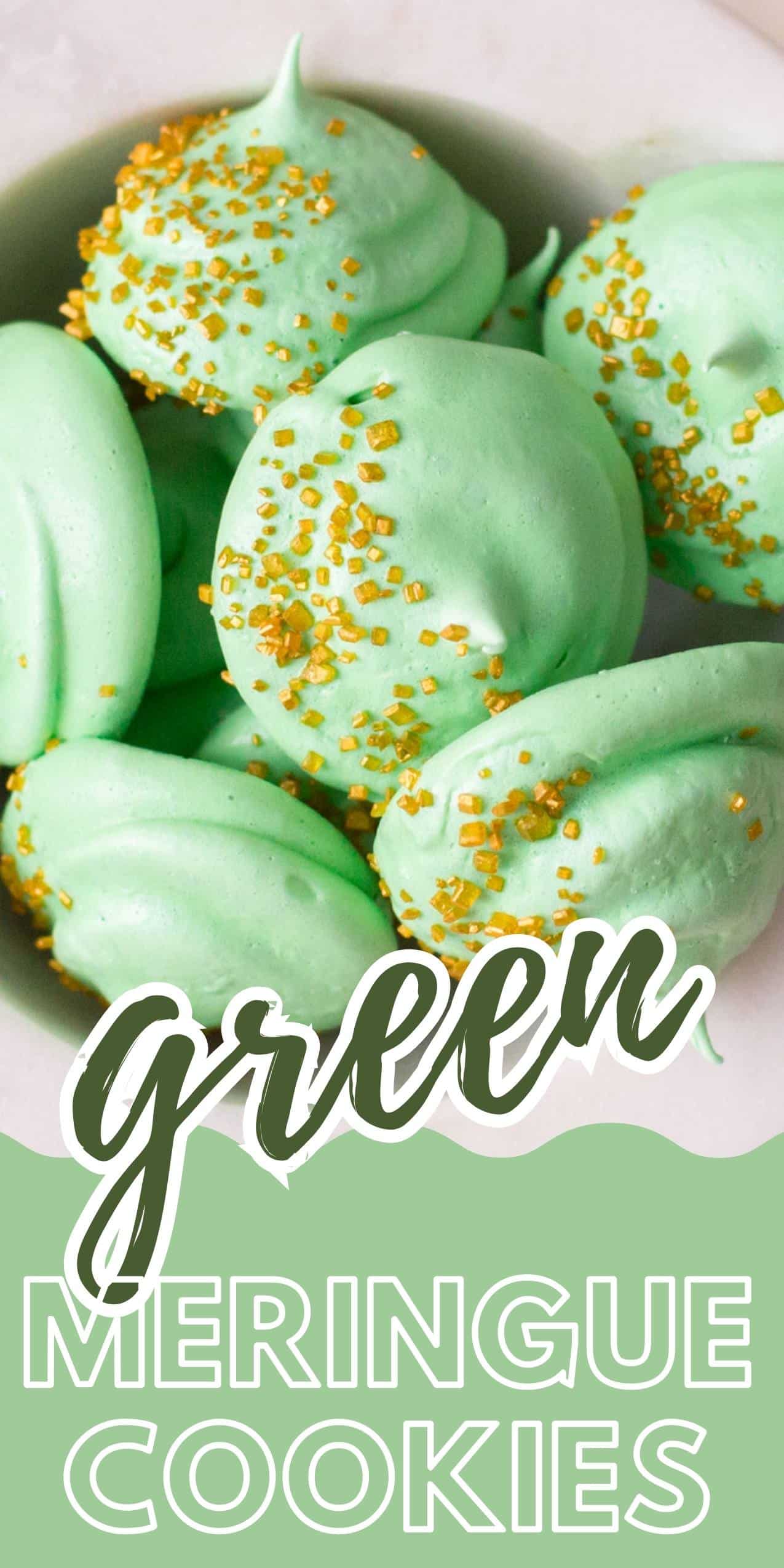 - Sprinkles. For St Patrick’s Day cookies, I chose gold sprinkles to go with the green meringue.