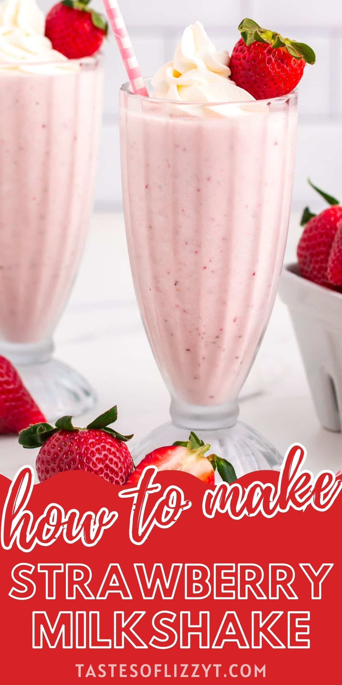 Learn how to make the creamiest homemade strawberry milkshakes with fresh strawberries. Top with homemade whipped cream for a delicious summer dessert!