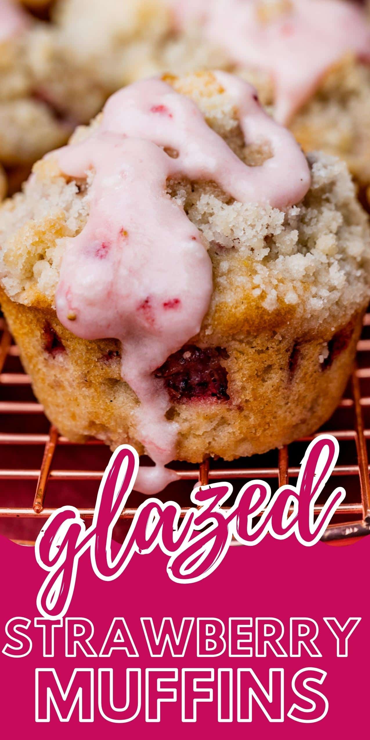 Soft, tender muffins full of strawberries and sugar crumb topping. Strawberry muffins are easy to mix up and perfect for brunch. This has the same glaze as our strawberry bundt cake recipe.