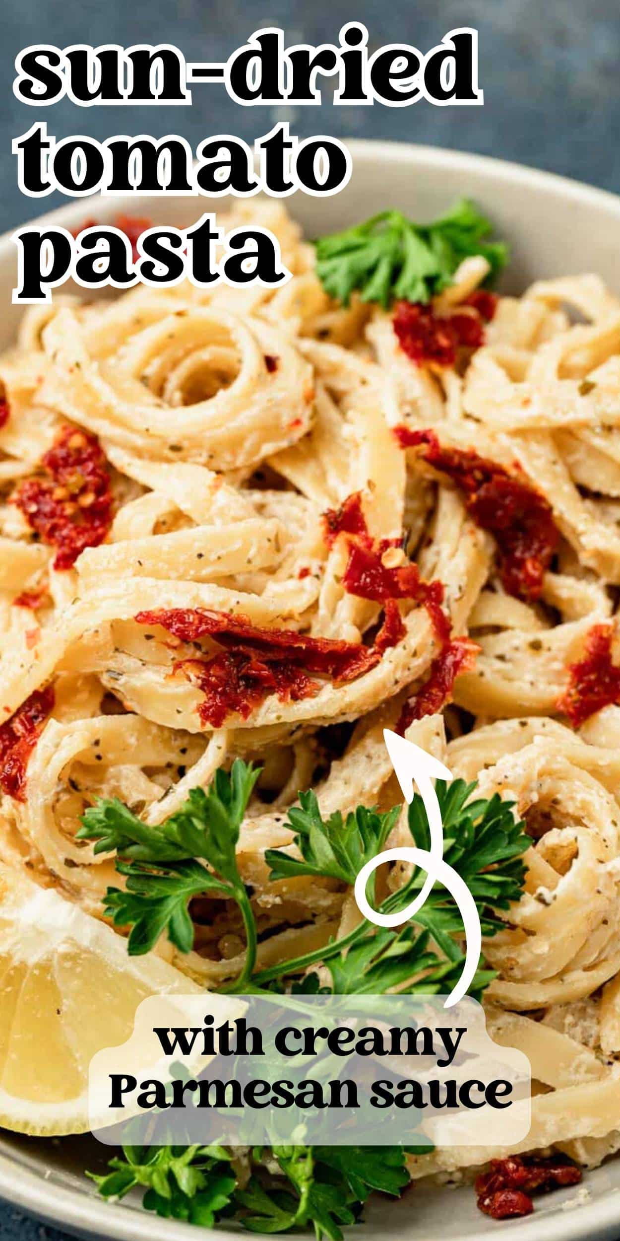 Sun dried tomato pasta has a creamy parmesan sauce flavored with sun dried tomatoes, pesto and garlic. Ready in less than 30 minutes.