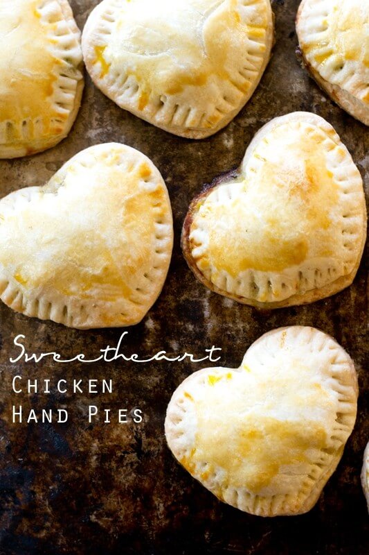 Pie crust isn’t just for sweet pies, ya know. My favorite savory use for our pie crust are these sweetheart chicken hand pies. Because, if you can get away with having pie crust for lunch or dinner, then I say let’s do it!