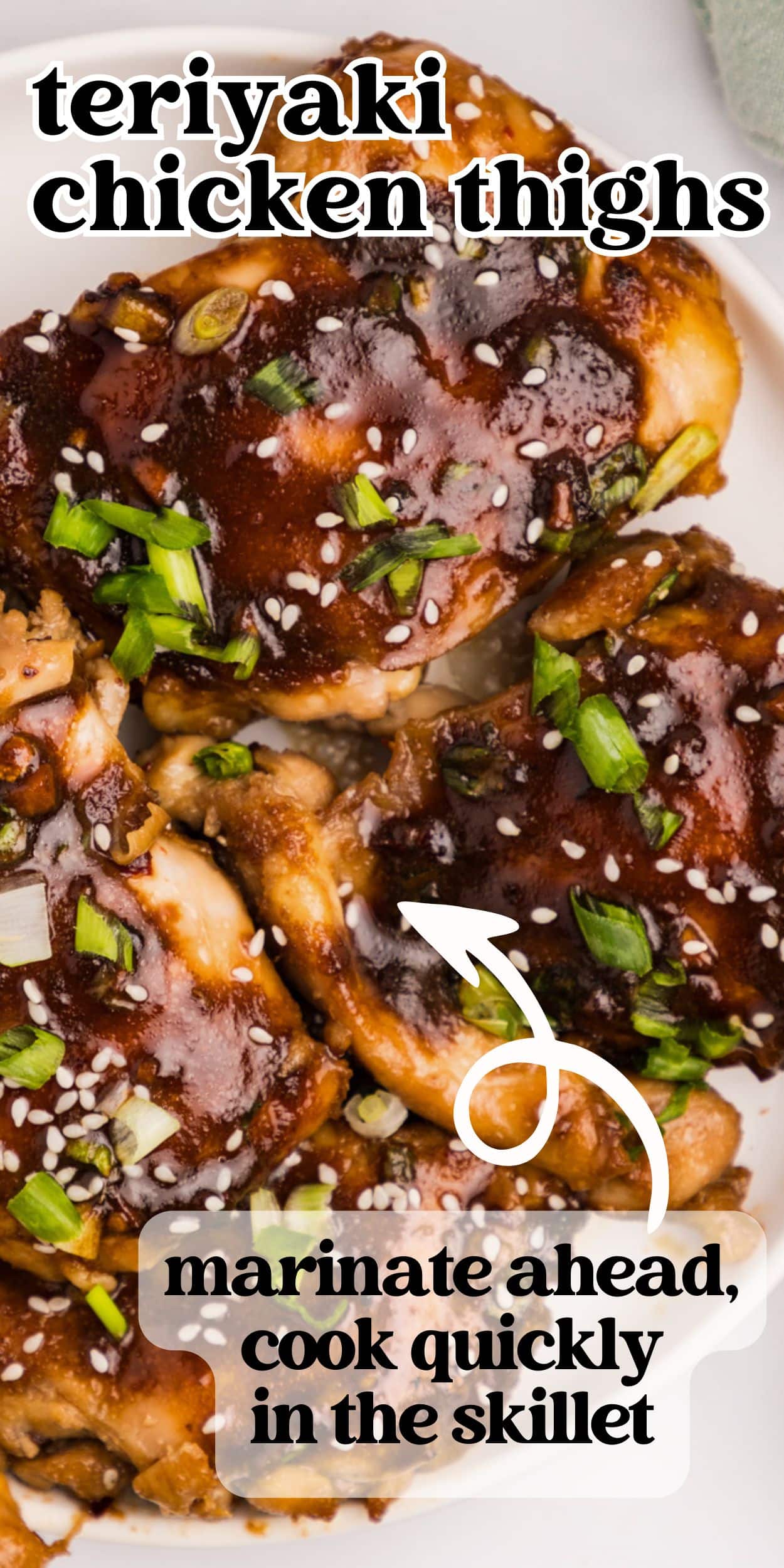 This easy teriyaki chicken thighs recipe will quickly be part of your weeknight rotation. Tender chicken in a savory and sweet teriyaki marinade that doubles as a flavorful sauce. Try our sheet pan chicken thighs, too!