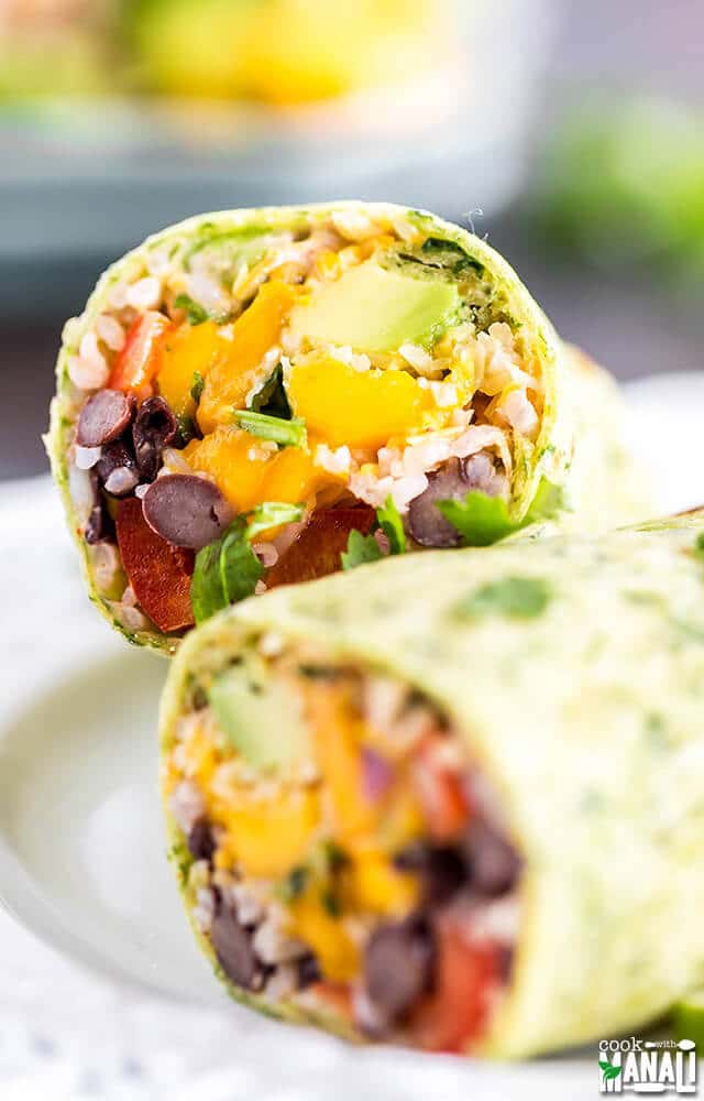 1. Tortilla: I used my homemade spinach tortilla here but of course you can store bought tortilla too. I do think the spinach tortillas make these burritos more flavorful.
