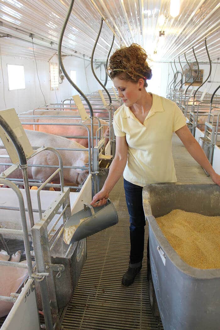 All pork farmers must be certified, meeting safety standards. The pigs have regular vet checkups. The Schwabs work with nutritionists to make sure the pigs have exactly the nutrients that they need to continue to produce quality meat. Just like humans, animals can pass disease back and forth. Lauren’s family is proud of the fact that their farm has never had a disease. The biosecurity measures they put into place have helped this.