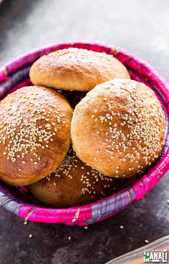 Trust me, once you make homemade hamburger buns at home you would never want to buy it from the stores. These whole wheat hamburger buns taste amazing with honey or jam and are perfect for all your burger recipes. The buns are obviously not as light as regular buns since this is 100% whole wheat but they have a great nutty taste, which I really liked. Hope you guys give this recipe a try!